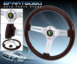350mm Streak Designed 3 Spokes Wood Steering Wheel Jdm Leaf Button Horn Badge