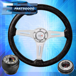 Black Slim Quick Release + Metallic Black Steering Wheel + Hub For 92-95 Civic