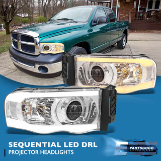 For 02-05 Dodge Ram 1500 Chrome Sequential LED DRL Projector Headlights Lamp Set