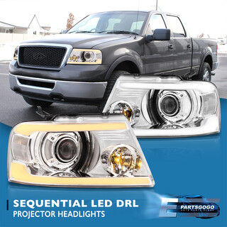 For 04-08 Ford F150 Mark LT Chrome Sequential LED DRL Projector Headlights Lamps