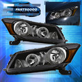 For 08-12 Honda Accord Sedan Black Amber Replacement Headlights Lamps Left+Right