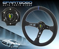 Universal Black Silver Steering Wheel Red Stitching + Wakaba Horn Button