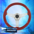 Universal 350mm 14inch Red Wood Chrome Deep Dish Steering Wheel 6 Bolts Button