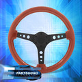 Universal JDM 350mm 14inch Red Wood Black Deep Dish Steering Wheel 6 Bolt Button