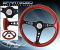 345mm Light Wood Grain Black Circles Designed Steering Wheel Jdm Button