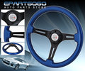 345mm Blue Wood Black 3 Spokes Steering Wheel Jdm Vip Style Button Horn