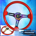 Universal 350mm 6 Bolt Hole Red Neo Chrome Steering Wheel Wakaba Button