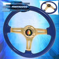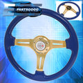 350mm 6 Bolt Hole Heavy Duty Blue Steering Wheel Trim Gold Center Fukushi