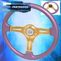 350mm 6 Bolt Hole Heavy Duty Purple Steering Wheel Trim Gold Center Wakaba