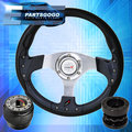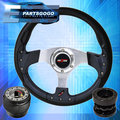 Black Pvc Carbon Fiber Silver Center Steering Wheel + Adapter For 96-00 Civic