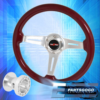 Chrome Hub For 86-01 Integra + Red Wood Chrome Center Deep Dish Steering Wheel