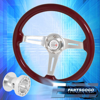 Chrome Hub + Red Wood Chrome Center Deep Dish Steering Wheel For 86-01 Integra