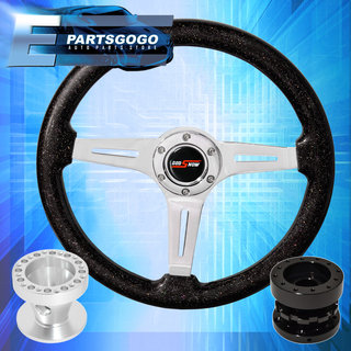 Metallic Black Steering Wheel + Black Extender + Chrome Hub For 89-98 240Sx