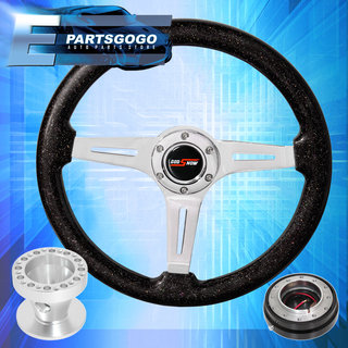 Metallic Black Steering Wheel + Slim Black Quick Release + Hub For 89-98 240Sx