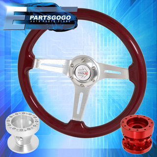 Red Extender + Hub For 89-98 240Sx + Red Wood Chrome Deep Dish Steering Wheel