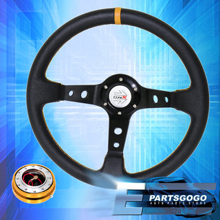 Universal 350mm Jdm Typer Black Yellow Steering Wheel Gold Thin Quick Release