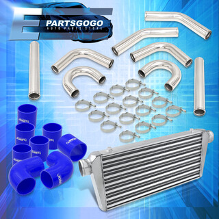 3" Intercooler 90 Degree Piping Kit U-Pipes Chrome + Clamp & Blue Couplers