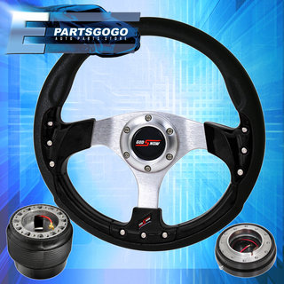 320mm Black Fusion Style Steering Wheel + Black Quick Release For 84-89 Mr2