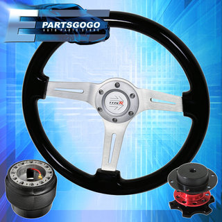 Black Wood Chrome Center Steering Wheel + Red Quick Release For 90-97 Miata