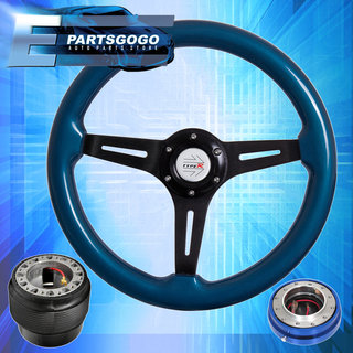 Blue Wood Black Center Deep Dish Steering Wheel Quick Release For 88-91 Civic