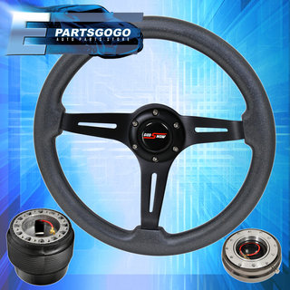 Gunmetal Wood Deep Dish Steering Wheel + Slim Quick Release For 90-97 Miata