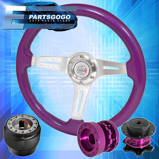 Purple Wood Silver Mid Steering Wheel + Quick Release Extender For 84-89 Mr2
