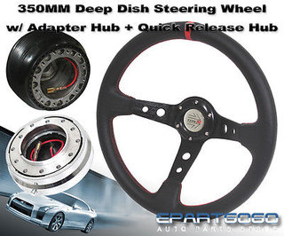 1989-2005 Eclipse 350mm Deep Dish Bk Steering Wheel+Adapter Hub+Quick Release Ch