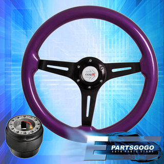 345mm Purple Wood Black Center Deep Dish Steering Wheel + Hub For 88-91 Prelude