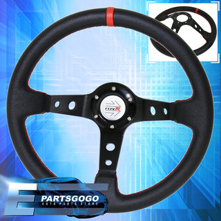 350mm Deep Dish Steering Wheel Pvc Leather Black Red Stitching Jdm Typer Horn