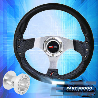 Black Pvc Carbon Fiber Silver Center Steering Wheel + Adapter For 1984-1989 Mr2