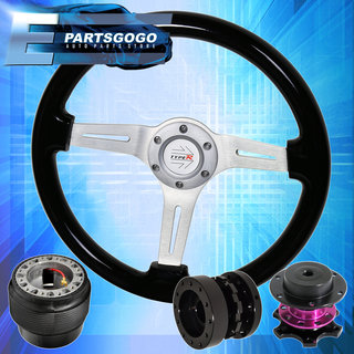 Black Wood Deep Dish Steering Wheel + Quick Release + Extender For 92-96 Prelude