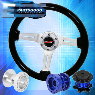 Black Wood Deep Dish Steering Wheel + Quick Release + Extender For 96-00 Civic