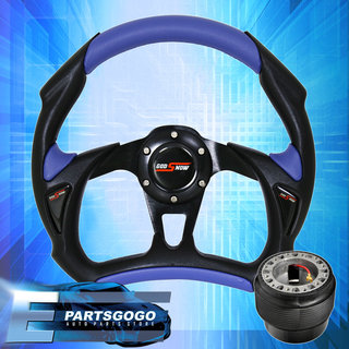 Blue Black Battle Style Pvc Leather Steering Wheel + Hub Adapter For 89-98 240Sx