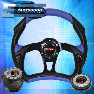 Blue/Black Battle Style Steering Wheel Quick Release Hub For 92-96 Honda Prelude