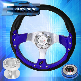 Blue Fusion Style Steering Wheel + Black Slim Quick Release For 96-00 Civic