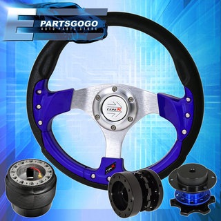 Blue Fusion Style Steering Wheel + Extender + Quick Release For 89-05 Eclipse