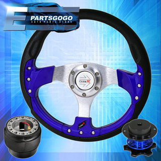 Blue Fusion Style Steering Wheel + Hub Adapter + Quick Release For 90-97 Miata