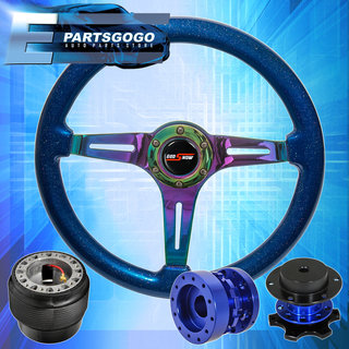 Blue Quick Release + Extender + Neo Chrome Blue Steering Wheel For 92-96 Prelude