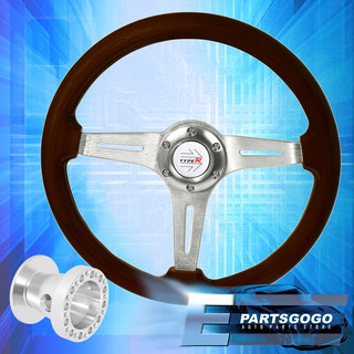 Dark Wood Aluminum Center Deep Dish Steering Wheel + Adapter For 96-00 Civic