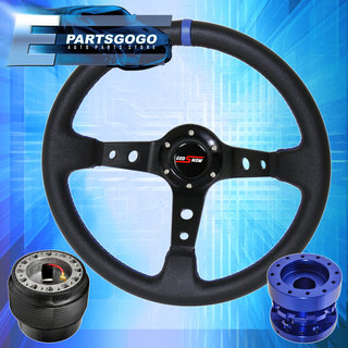 Deep Dish Black Steering Wheel + Blue Hub Extender + Adapter For 89-05 Eclipse