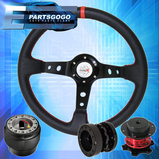 Deep Dish Black Steering Wheel + Quick Release + Hub Extender For 92-96 Prelude