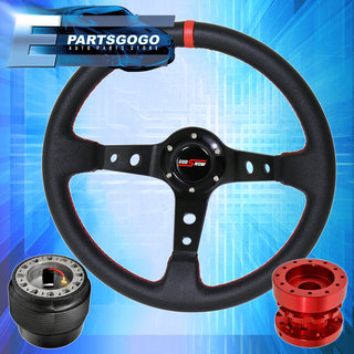 Deep Dish Black Steering Wheel + Red Extender + Hub Adapter For 88-91 Prelude