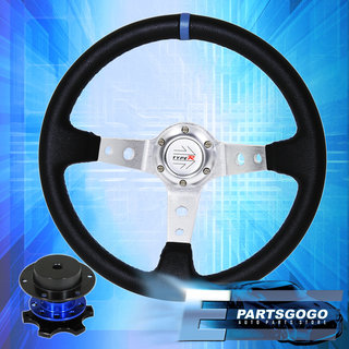 Deep Dish Black Steering Wheel Silver Center + Competition Style Quick Release