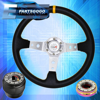 Deep Dish Black Steering Wheel + Slim Quick Release + Adapter For 89-98 240Sx