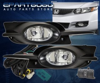 For 2009-2011 Honda Civic Coupe JDM Front Clear + Rear Red Fog Lights Lamps Len