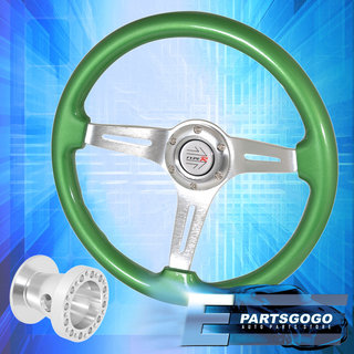 Green Wood Silver Center Deep Dish Steering Wheel + Adapter For 96-00 Civic