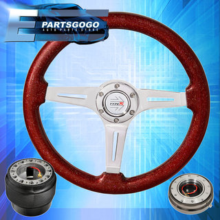 Hub For 89-98 240Sx + Slim Quick Release + Metallic Red Type-R Steering Wheel