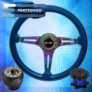 Metallic Blue Neo Chrome Steering Wheel + Blue Quick Release For 88-91 Civic