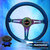 Metallic Blue Wood Grain Steering Wheel Neo Chrome Center + Blue Quick Release