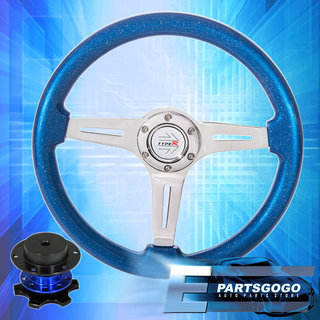 Metallic Ocean Blue 345mm Steering Wheel + Blue Competition Style Quick Release